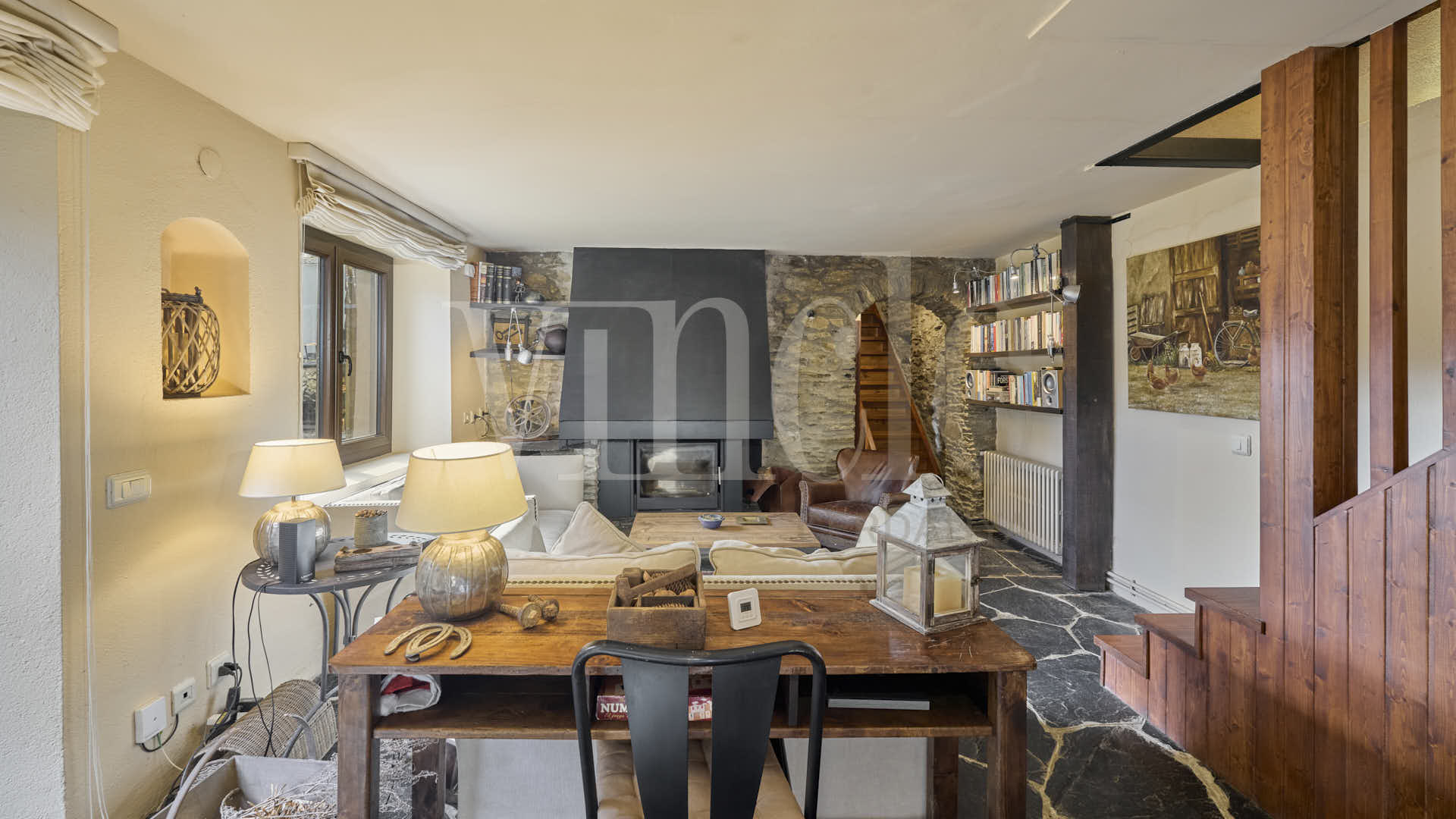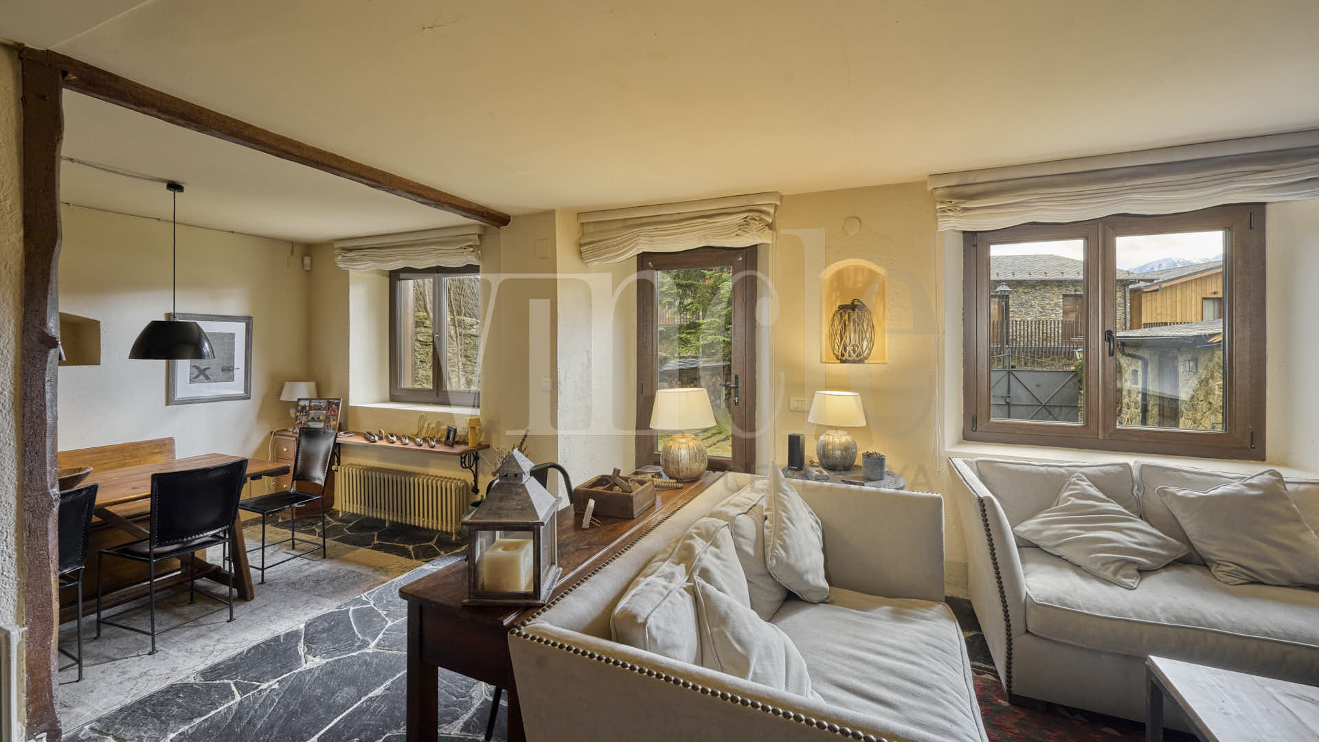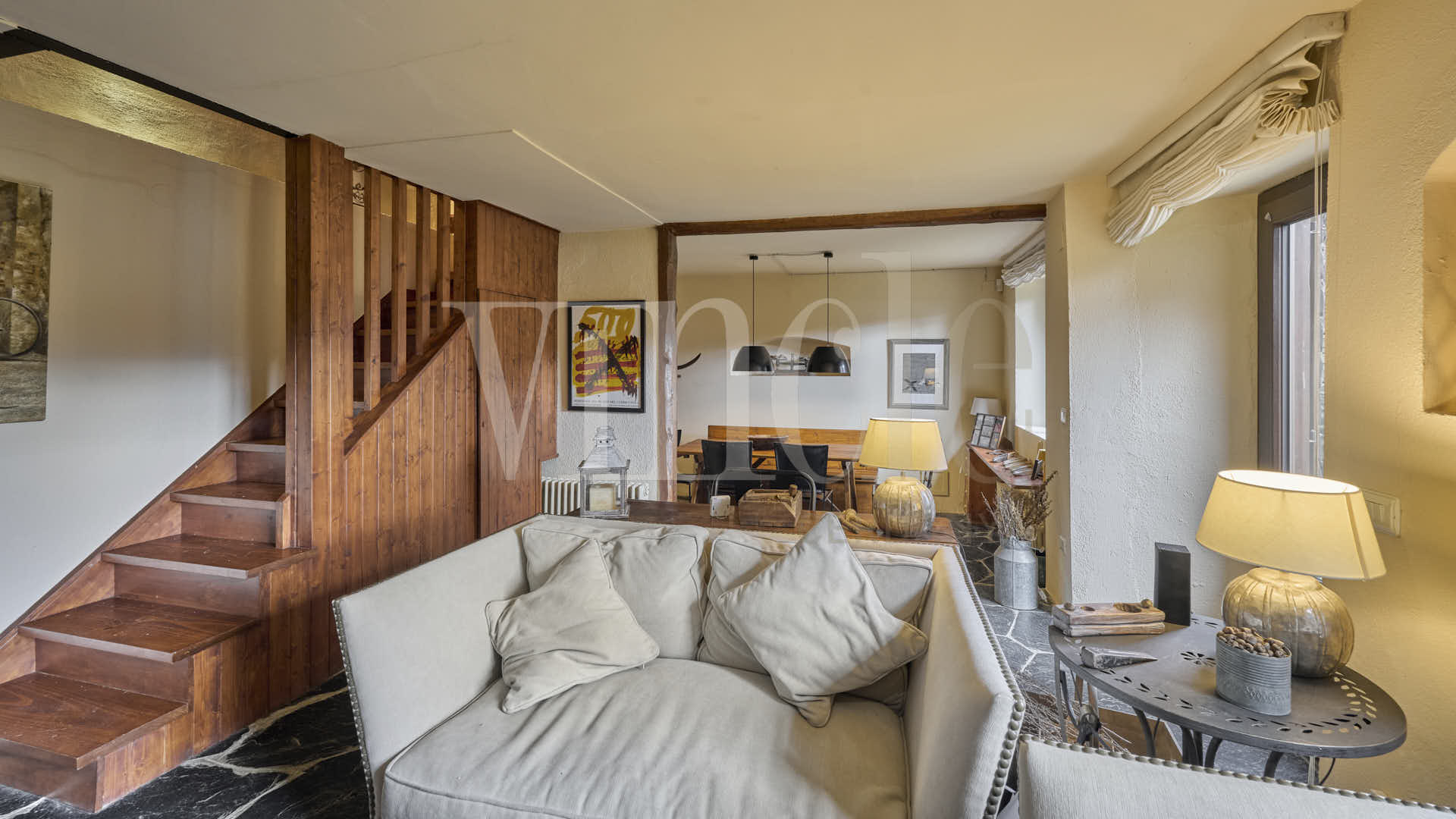 En la planta principal encontramos una amplia y luminosa zona de día, con un salón muy confortable con chimenea y salida directa al exterior, que conecta con un acogedor espacio de comedor. La cocina, con office, está totalmente equipada y pensada para el día a día. En esta misma planta también hay un baño completo.