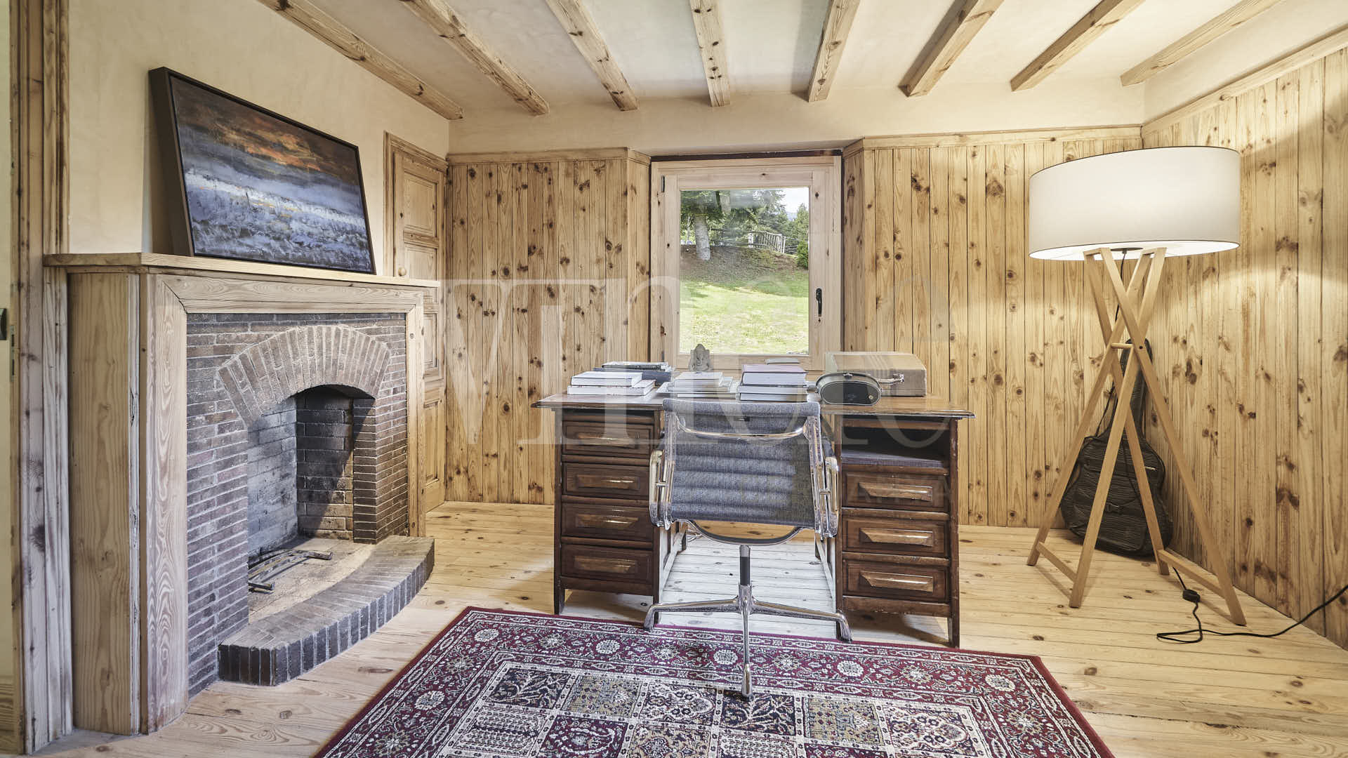 La planta sótano está concebida como un espacio complementario de relajamiento y funcionalidad: una sala de estar con chimenea perfecta para reuniones familiares o con amigos, una habitación doble, una habitación de servicio tipo suite, un baño completo, la sala de máquinas y un práctico almacén de pellets.