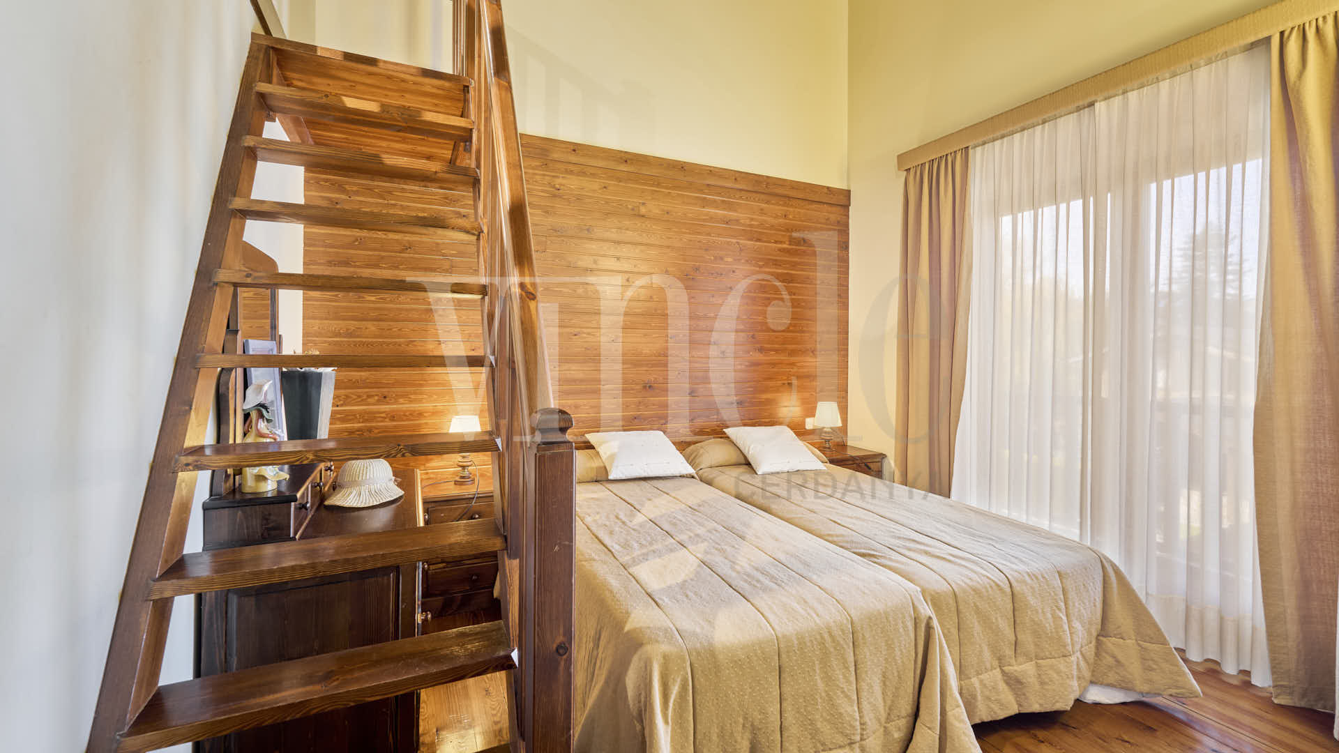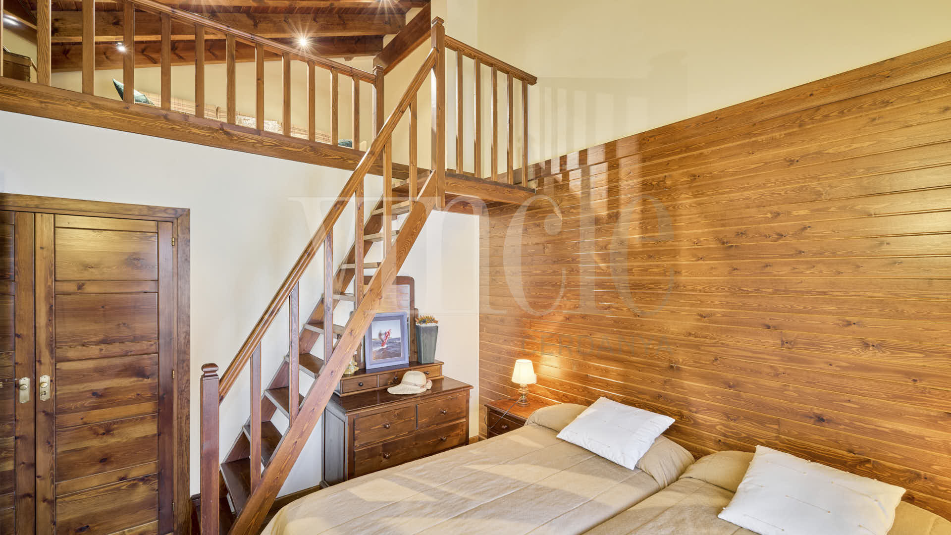 La primera planta está destinada al descanso, con dos habitaciones dobles, una de ellas con un encantador altillo que añade un toque especial. La habitación principal es tipo suite, ofreciendo un espacio íntimo y elegante.