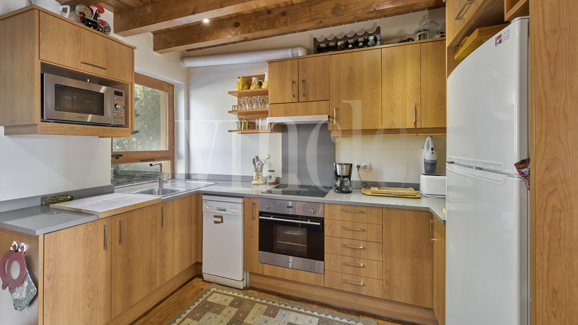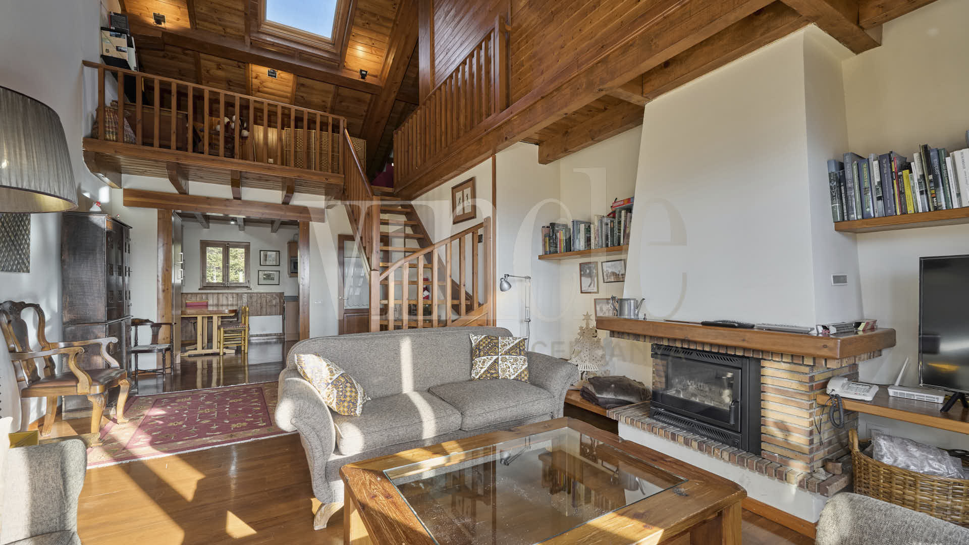 Accedemos por la planta baja, donde encontramos la zona de día: una magnífica cocina totalmente equipada con espacio de comedor y un salón muy confortable, luminoso y acogedor con chimenea y salida directa a la terraza.