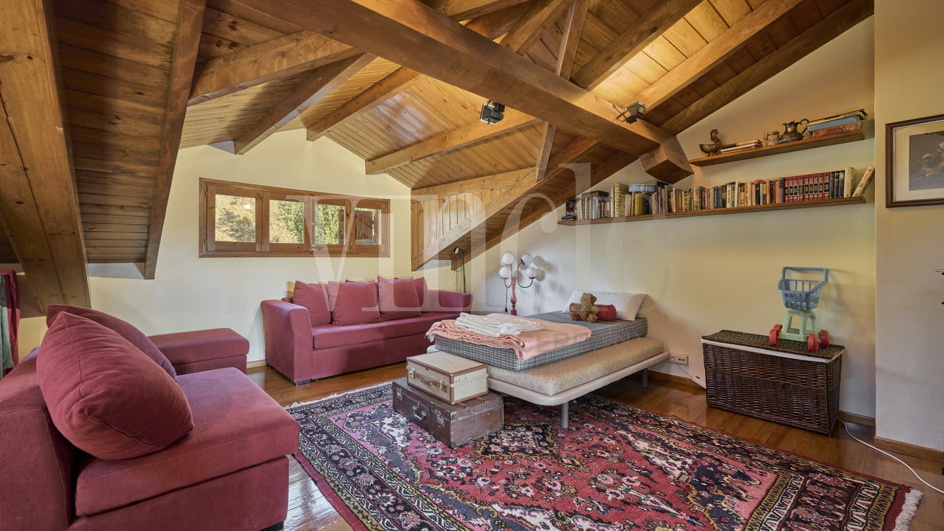 En la planta superior descubrimos una extraordinaria sala de estar o espacio polivalente, ideal como zona de relajación, despacho o sala de juegos, así como otra habitación tipo suite.