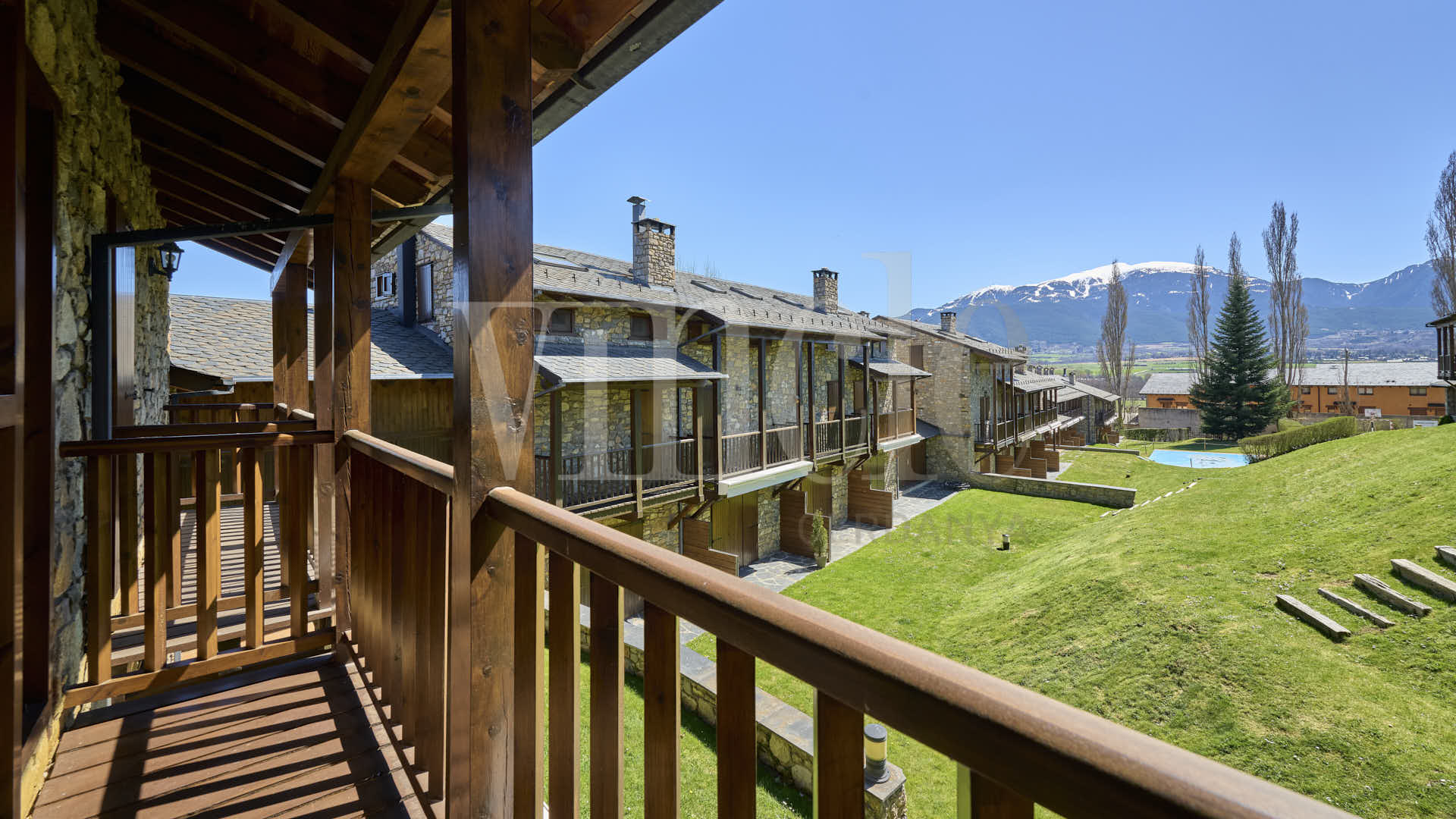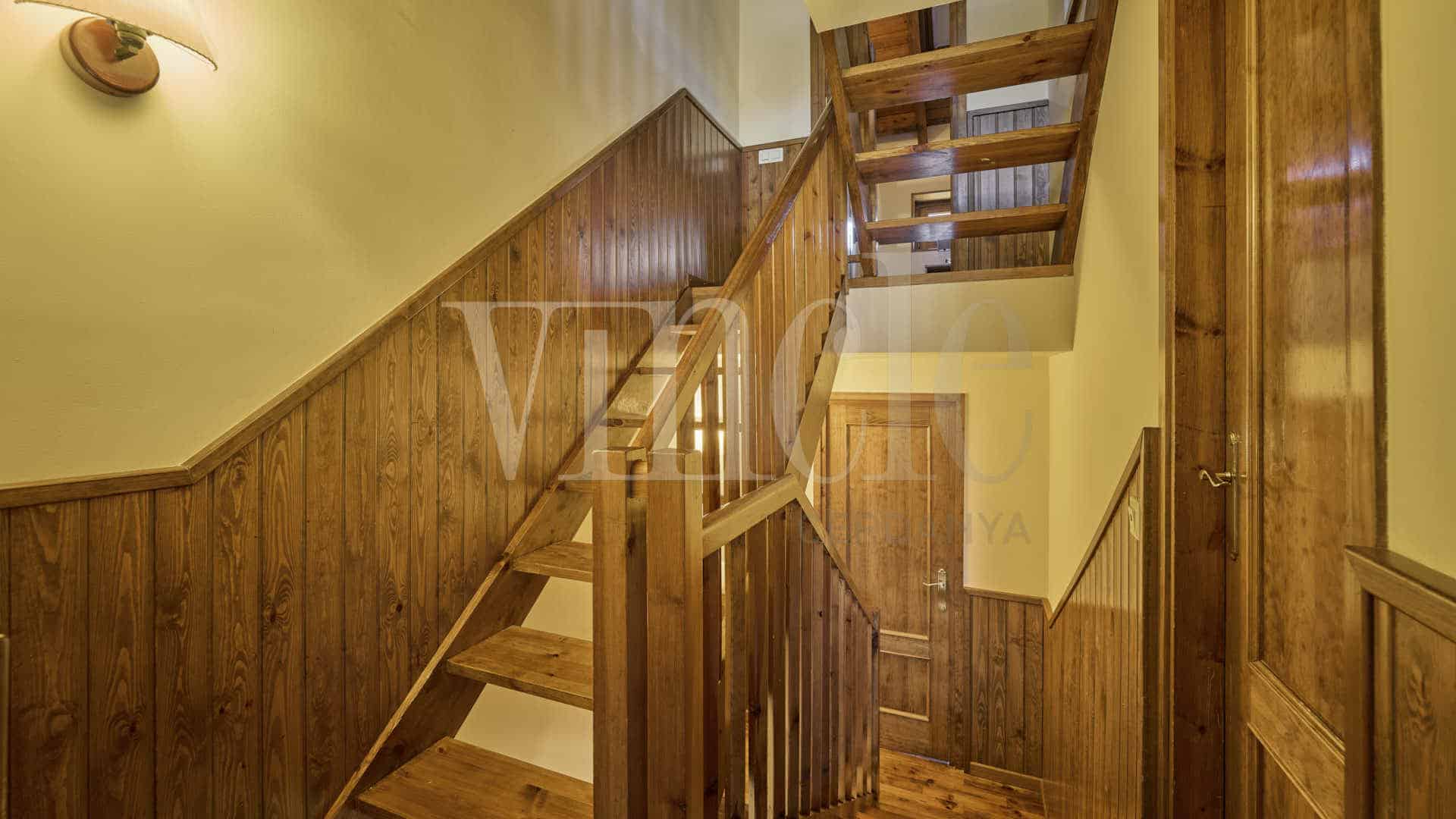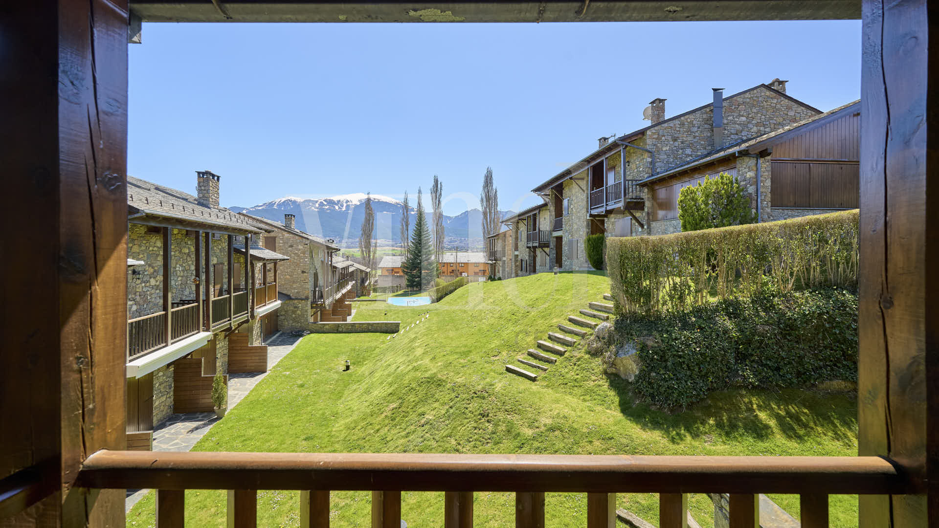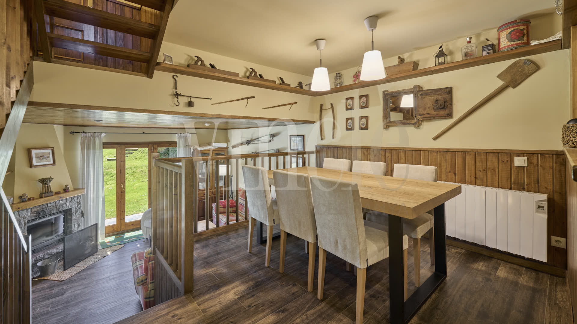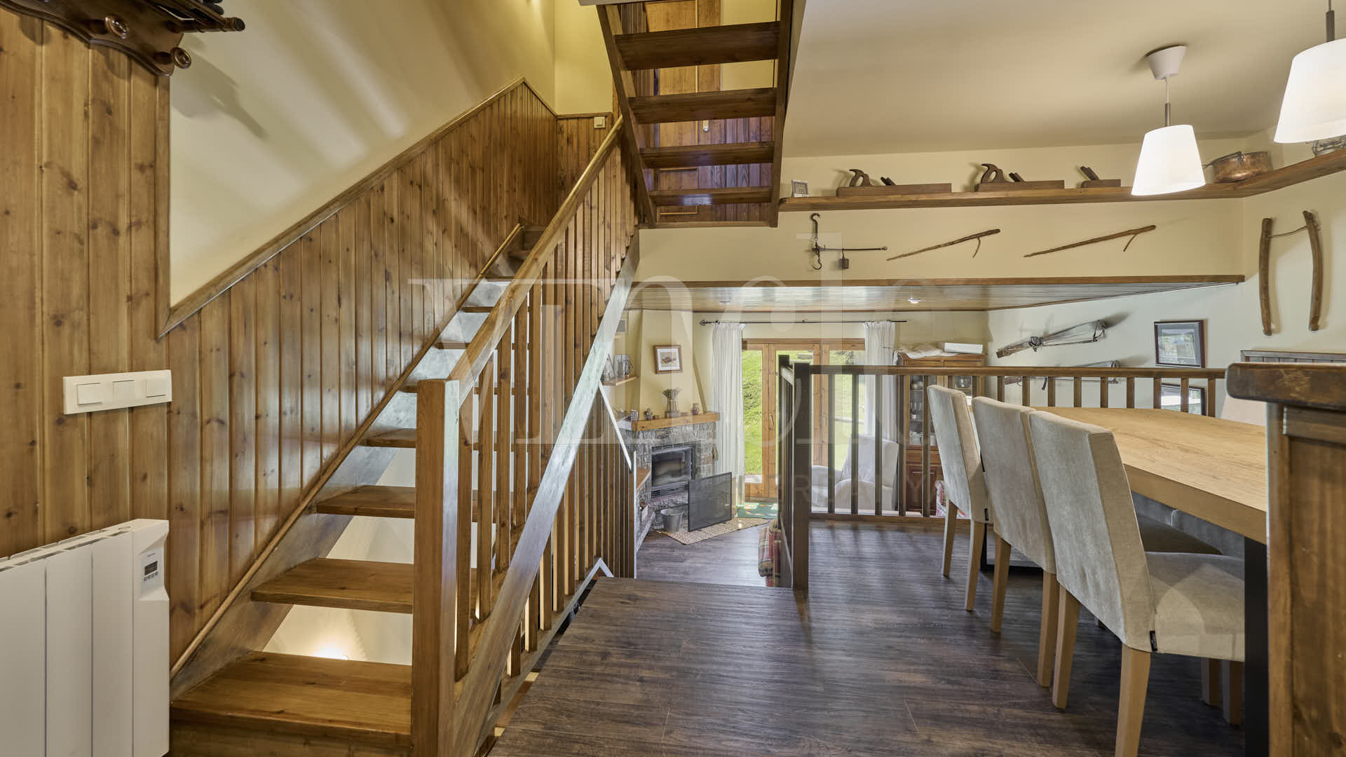 L’habitatge es distribueix en diferents nivells, fet que li aporta un ambient càlid i acollidor. A la zona de dia hi trobem un confortable saló amb llar de foc i sortida a un agradable porxo, un espai de menjador i una cuina oberta totalment equipada, a més d’un bany.