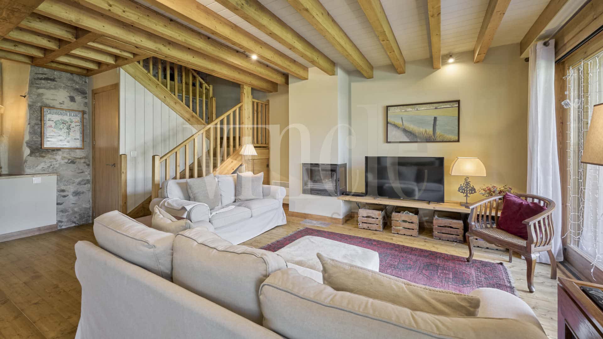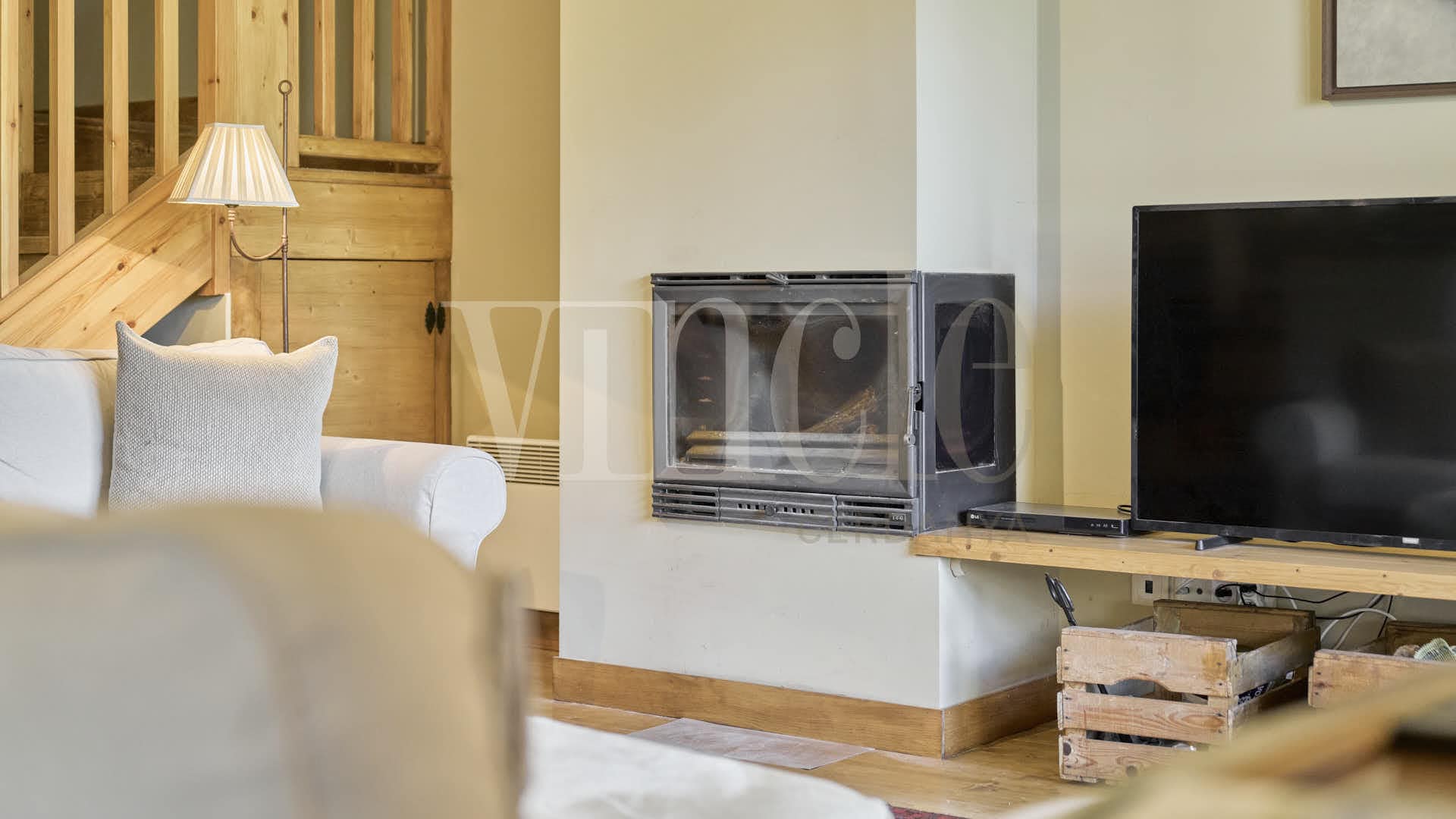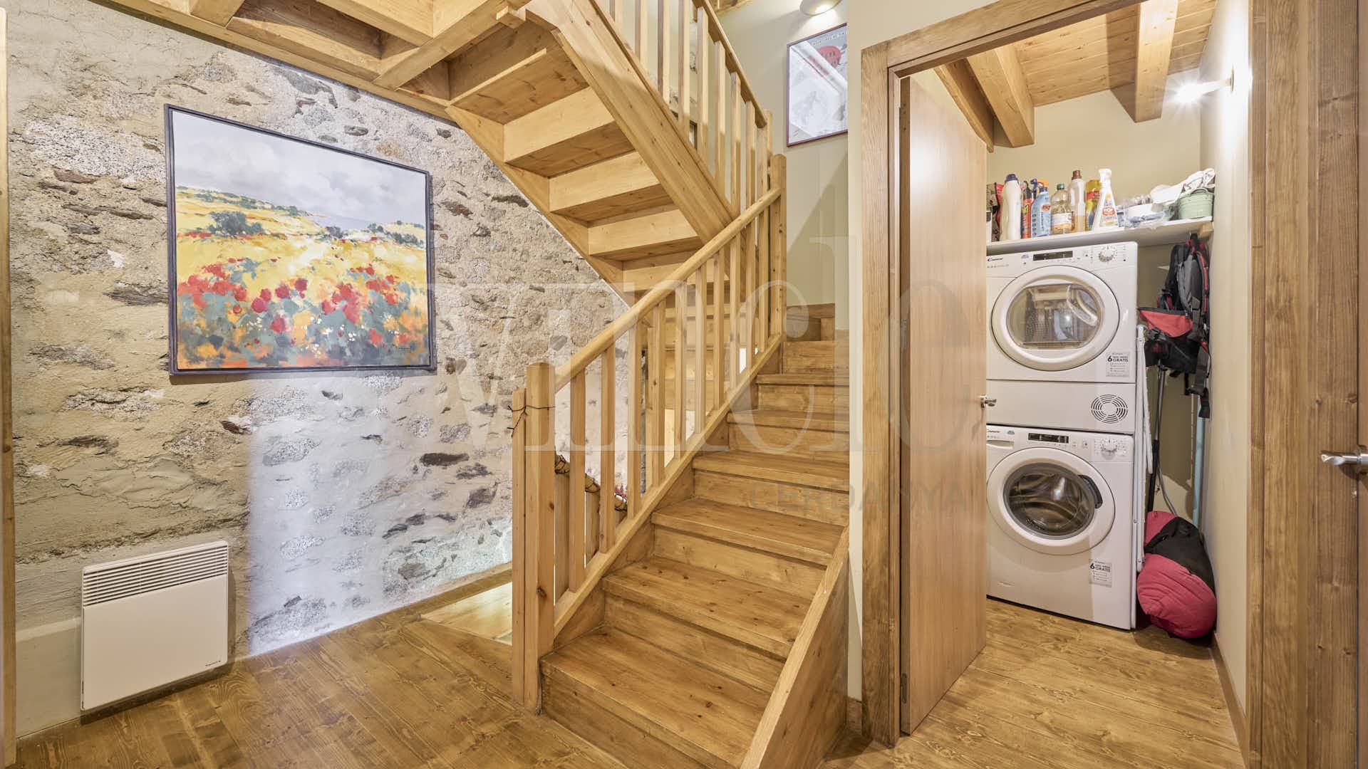 En la planta baixa trobem l’acollidora zona de dia, composta per una cuina oberta amb barra totalment equipada, lavabo, menjador i un càlid saló amb llar de foc. Des d’aquí s’accedeix directament a un encantador porxo i a un jardí privat amb accés directe al jardí comunitari, ideal per a gaudir de l’aire lliure en qualsevol època de l’any.