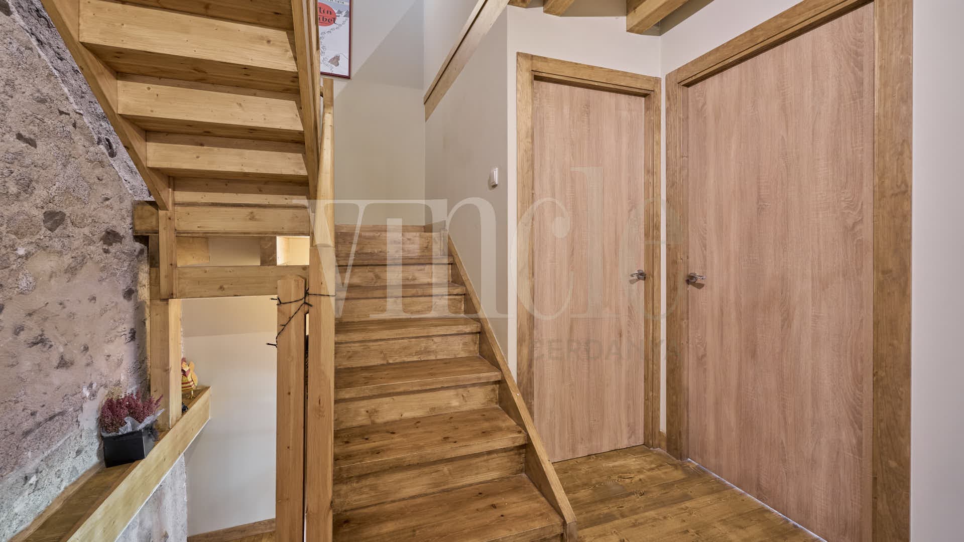 Pugem a la primera planta, on es distribueixen una habitació doble amb sortida a una bonica terrassa, un bany complet, i una lluminosa suite amb sortida exterior. Aquesta planta també consta d’un pràctic espai de safareig.