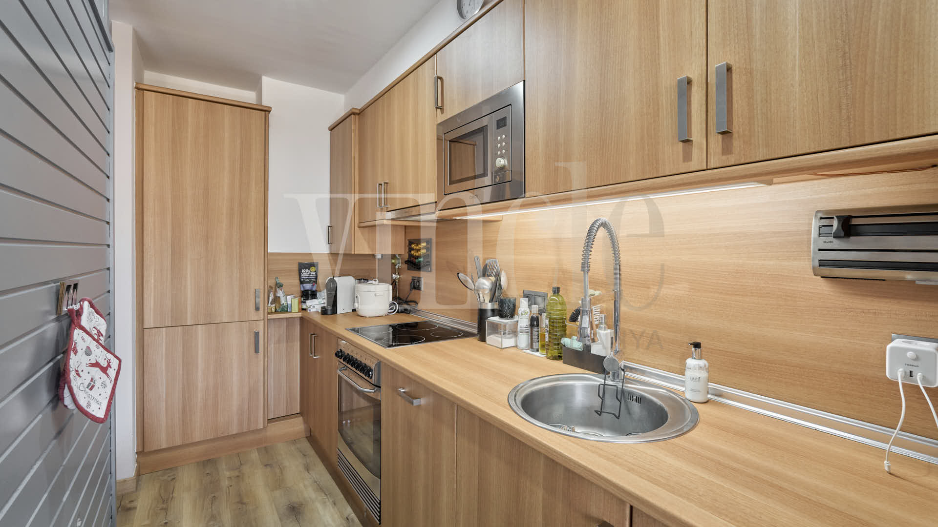 En la planta principal trobem un lluminós saló amb accés a una assolellada terrassa, perfecta per a gaudir de l’aire pur i de les vistes panoràmiques. Comparteix espai amb el menjador i una cuina totalment equipada, amb rentavaixella i nevera integrats, a més de forn i microones nous. El bany disposa de rentadora-assecadora i un pràctic espai de magatzematge. En l’entrada, un armari de paret i un altre armari addicional ofereixen un extra de capacitat.