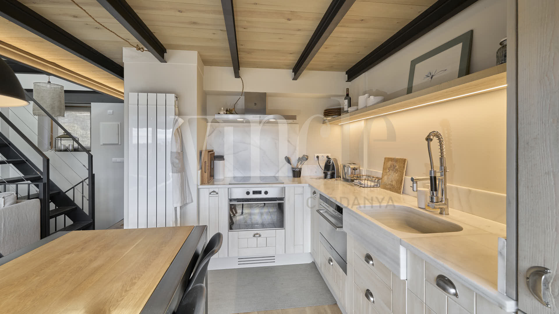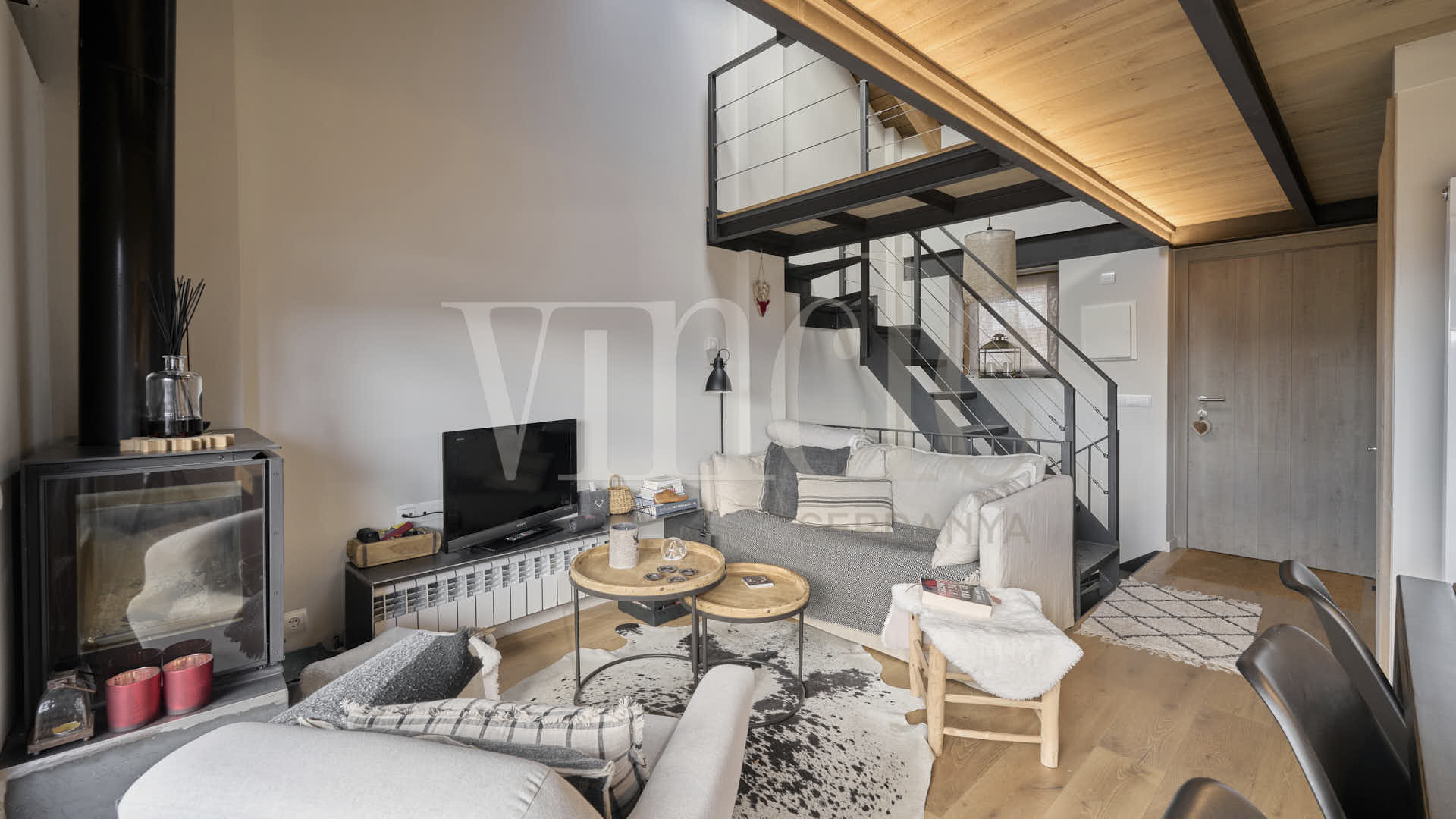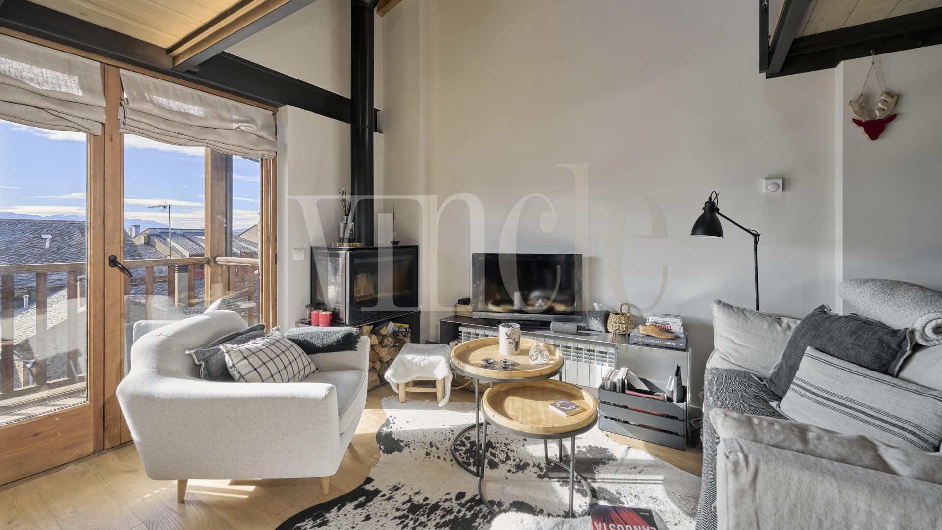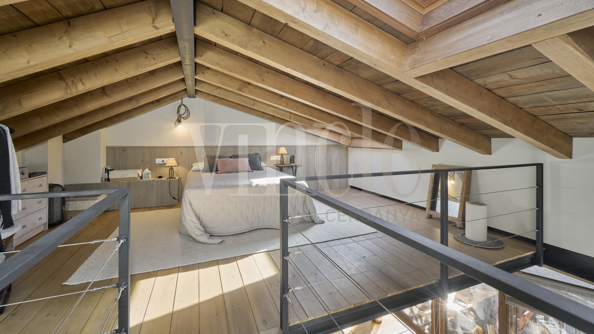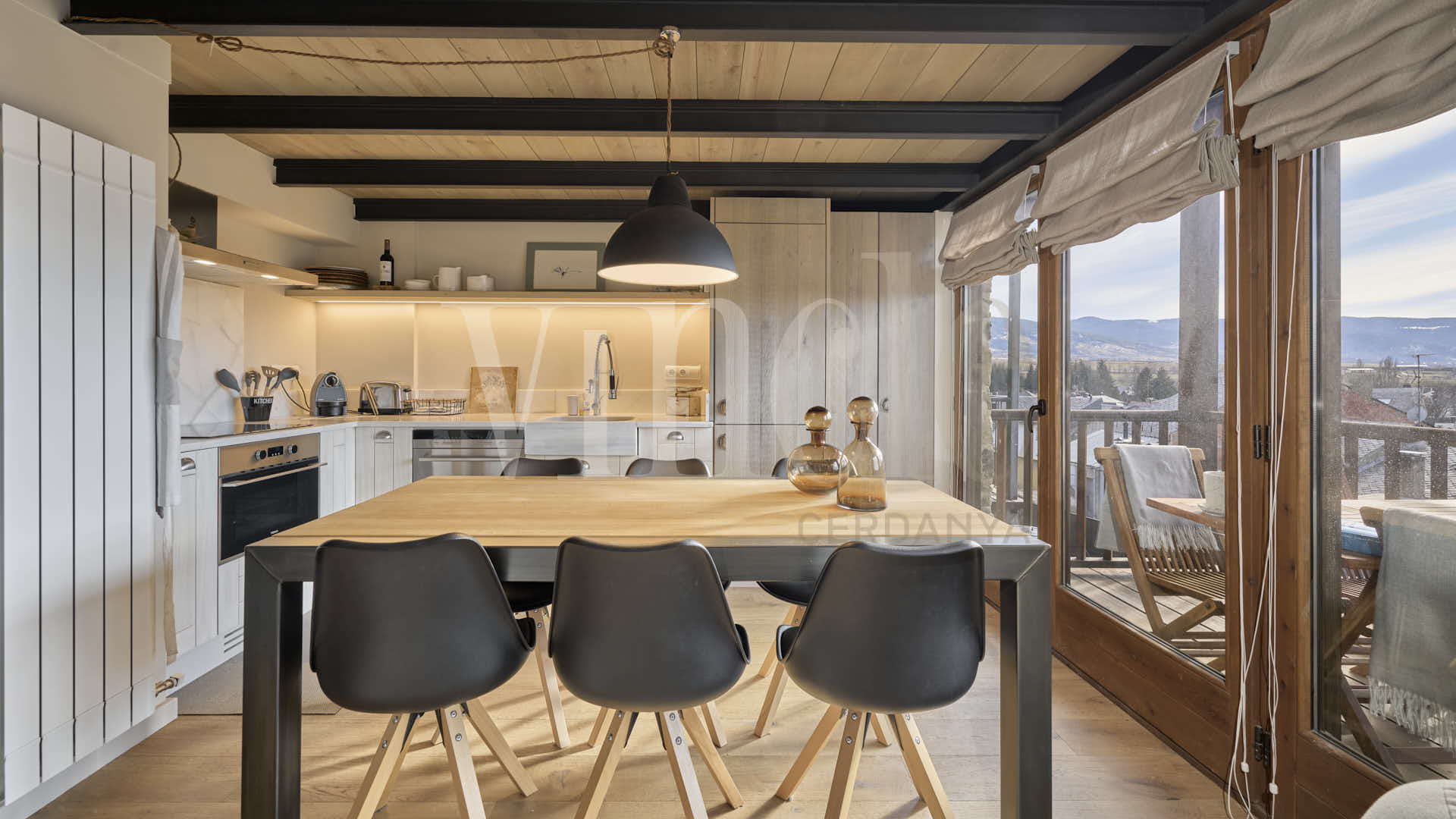 La zona de dia destaca per la seva lluminositat i calidesa, amb un saló confortable amb llar de foc i accés a una terrassa, perfecta per gaudir de l’exterior en qualsevol època de l’any. La cuina oberta, totalment equipada i de disseny actual, s’integra amb l’espai de menjador, creant un ambient pràctic i agradable per al dia a dia.