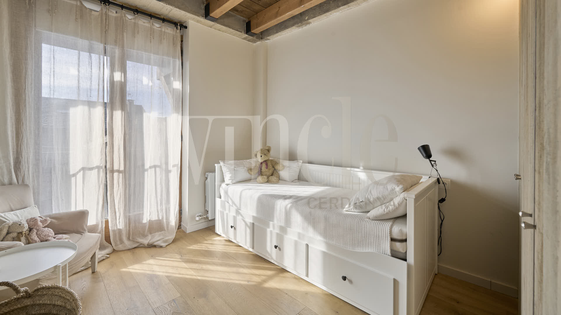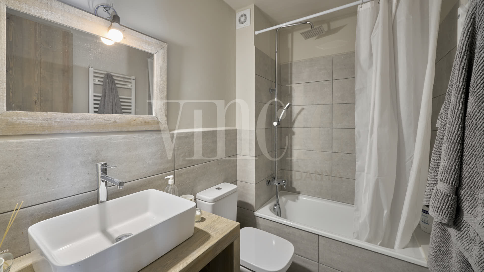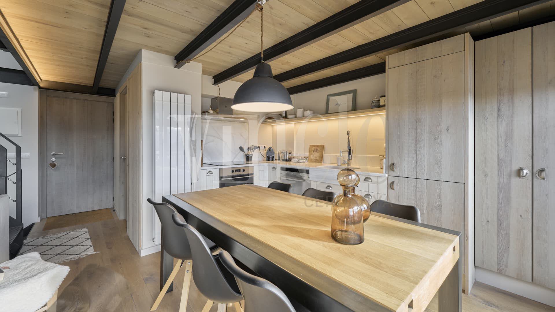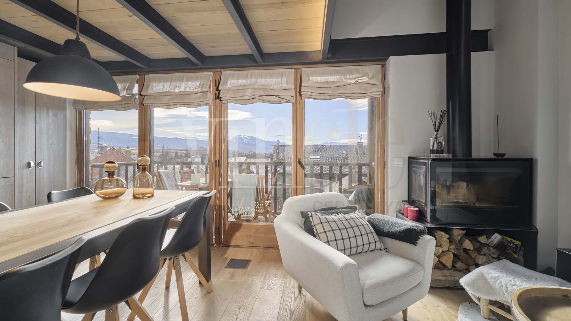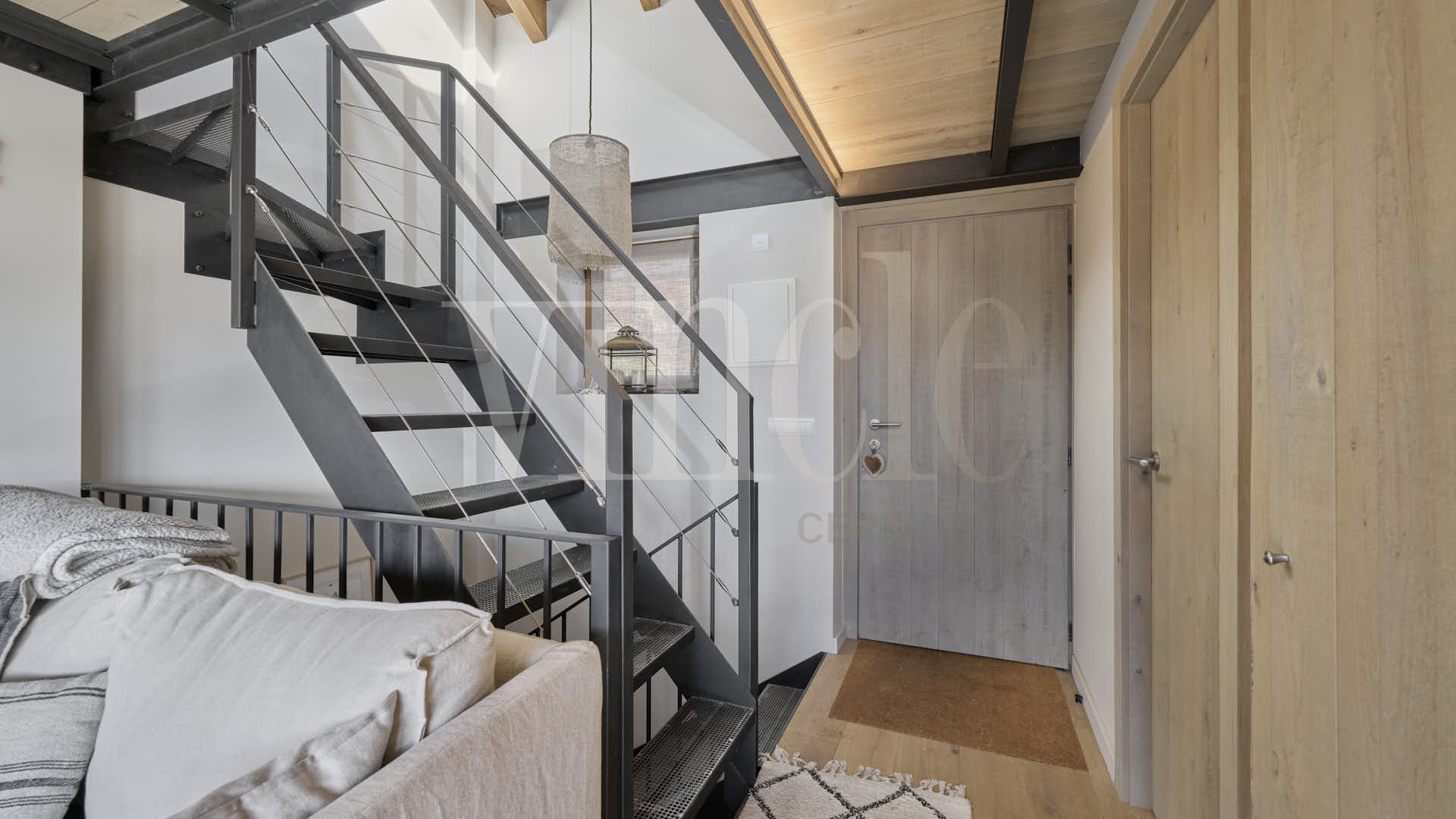 La zona de dia destaca per la seva lluminositat i calidesa, amb un saló confortable amb llar de foc i accés a una terrassa, perfecta per gaudir de l’exterior en qualsevol època de l’any. La cuina oberta, totalment equipada i de disseny actual, s’integra amb l’espai de menjador, creant un ambient pràctic i agradable per al dia a dia.