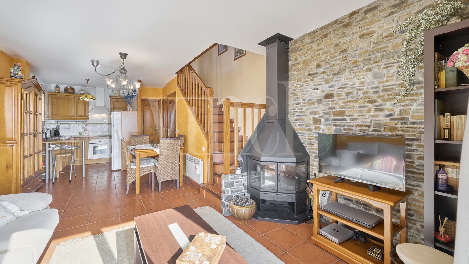 Pugem a la planta baixa, on s’ubica la zona de dia: cuina oberta totalment equipada i integrada al menjador, lavabo de cortesia i un saló lluminós i molt acollidor amb llar de foc i sortida directa a la terrassa i al jardí privat, que compta amb zona de barbacoa ideal per gaudir a l’aire lliure.