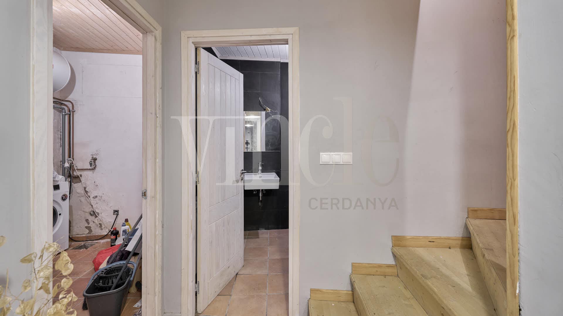 Des d’aquesta mateixa planta, baixem al soterrani, on trobem un garatge, un safareig, un traster i una sala polivalent, perfecta per adaptar-la com a sala de jocs, sala d’estar o habitació. En aquesta planta també hi ha un bany complet, aportant encara més funcionalitat a l’espai.