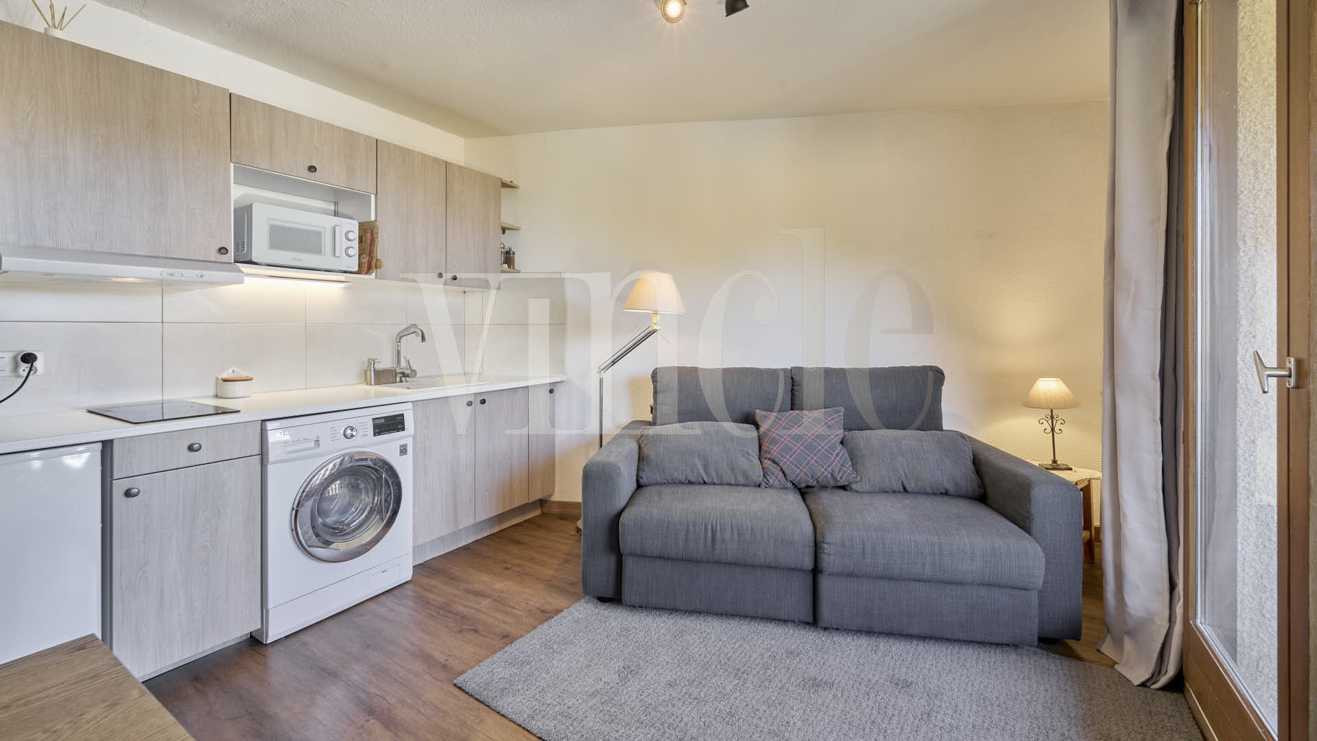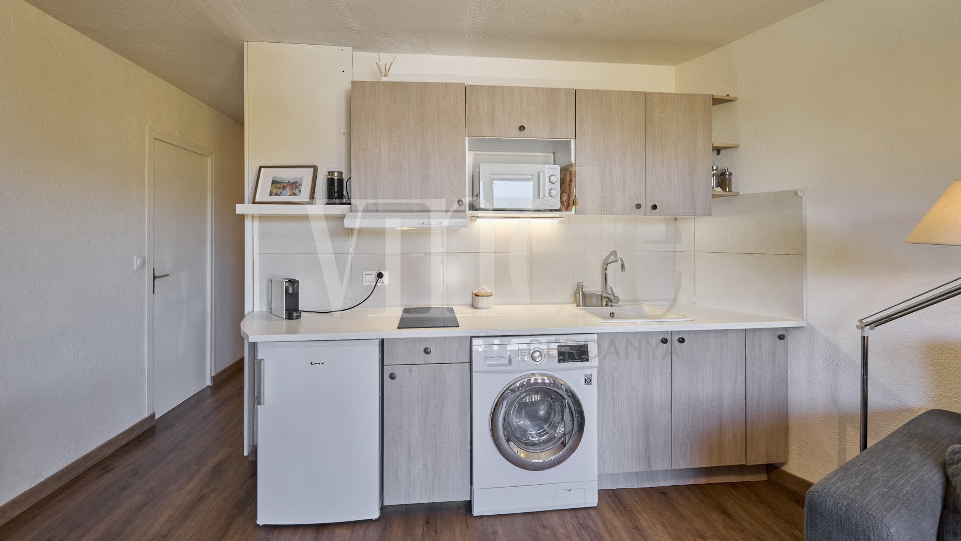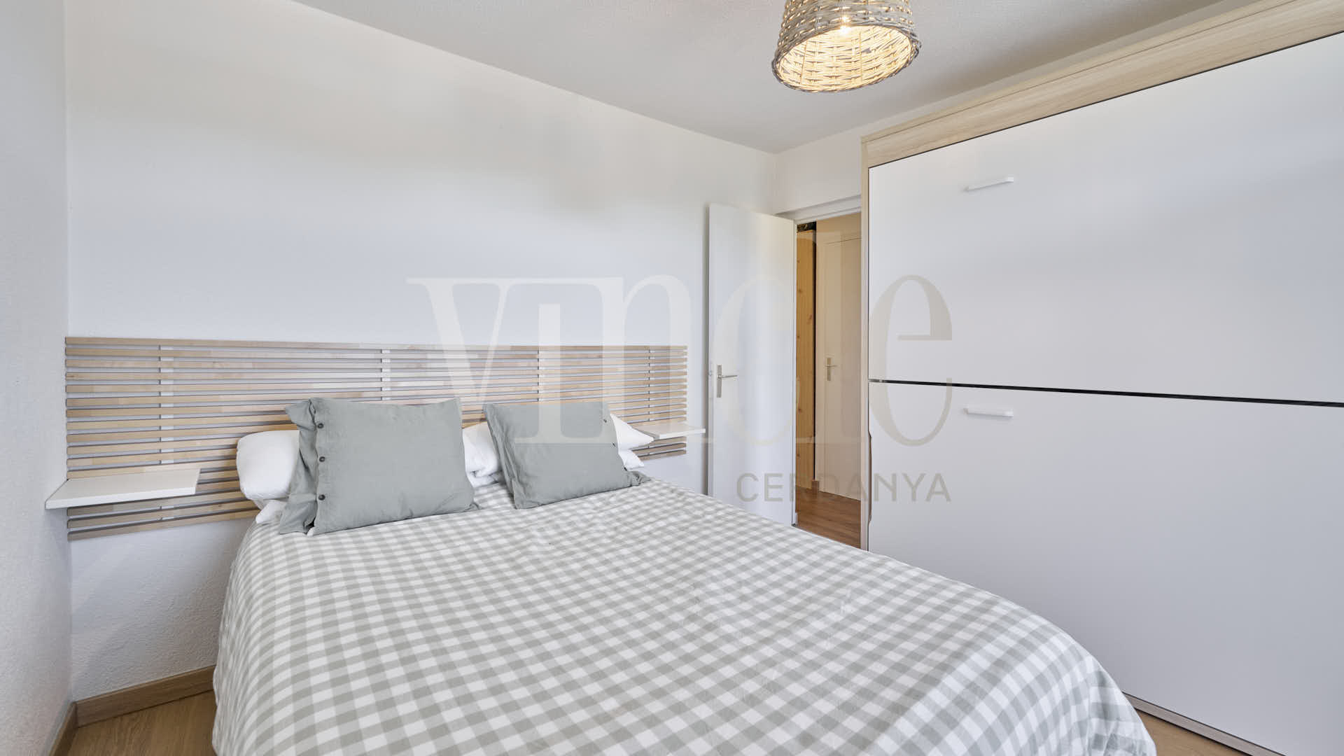 L’habitatge disposa d’una habitació doble amb lliteres plegables, bany complet i un acollidor espai obert on s’integren el saló-menjador i la cuina, creant un ambient càlid i funcional.