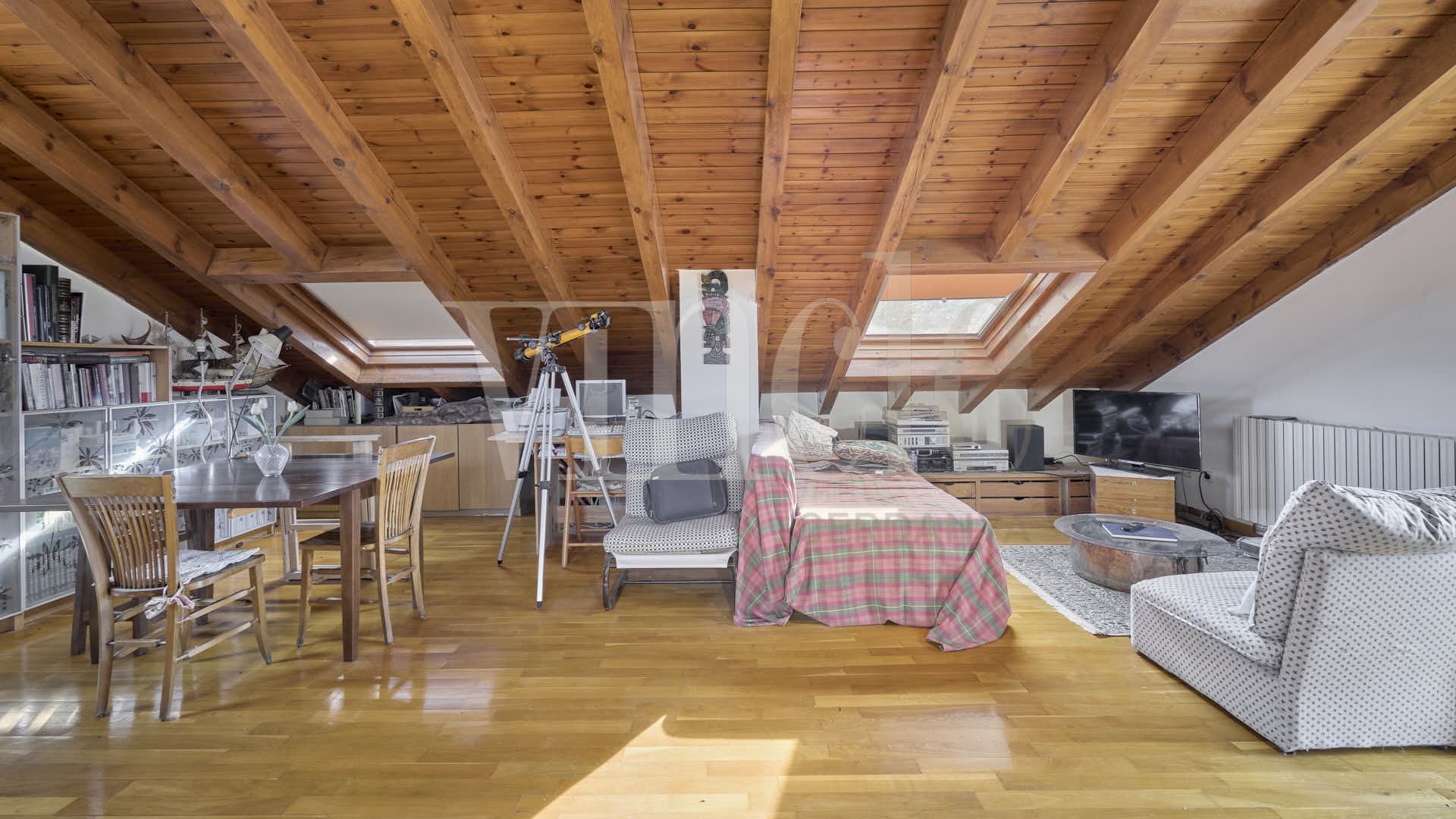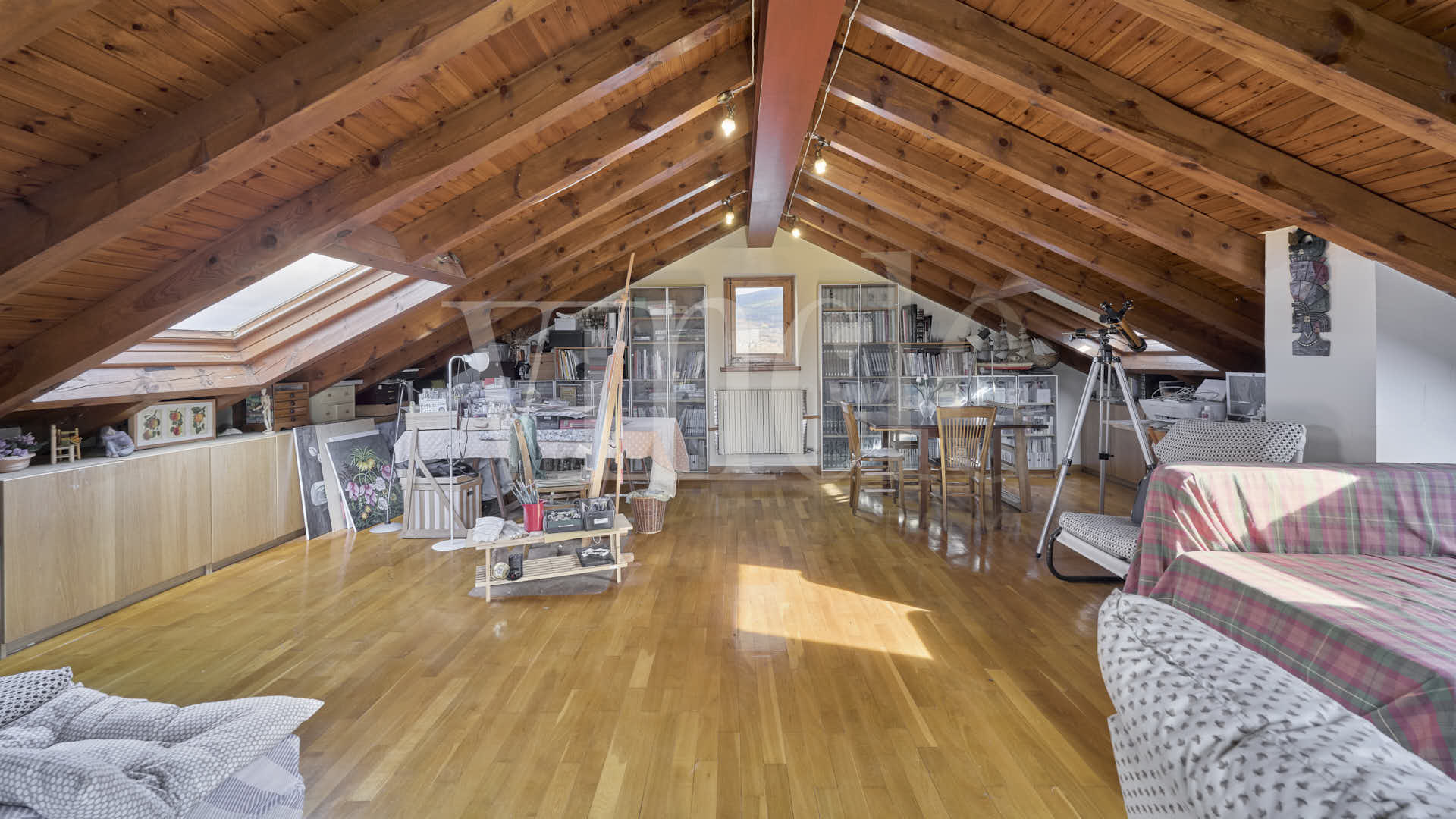 A les golfes hi trobem un espai polivalent extraordinari, ideal com a sala d’estar, zona de jocs, estudi o espai de descans addicional.